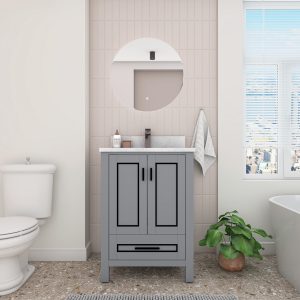 DK Allier 84D White Rectangular Sink Grey Bathroom Vanity Cabinet